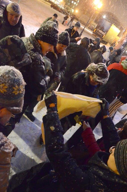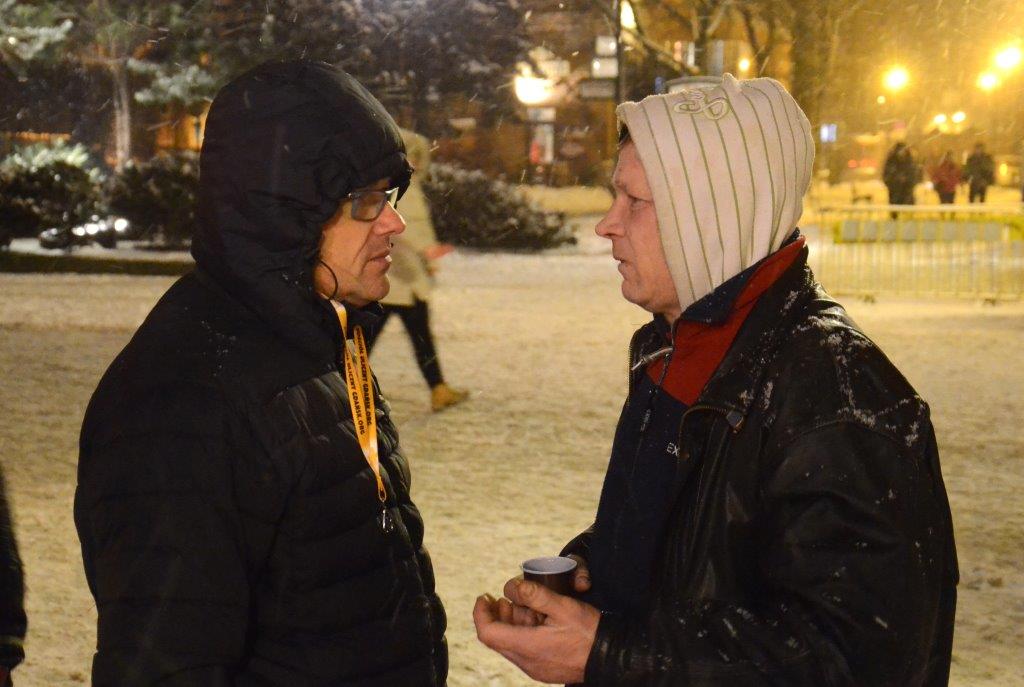 Przedostatni dzień roku spędziliśmy na mrozie, w zamieci śnieżnej. Było pięknie. Czysto i świątecznie. Świętowaliśmy dobroć naszego Boga. Ludzi było niewielu. Przyszli ci najbardziej potrzebujący, którzy walczą o przetrwanie, którzy potrzebują pokarmu i kurtki. Daliśmy im jedzenie i ubranie, słowo i pokrzepienie. Pewien mężczyzna tydzień wcześniej miał spuchnięte, sine z zimna nogi. Zamówił buty w numerze, jakiego nie udało nam się zdobyć. Jeden z wolontariuszy kupił mu te buty. Inna wolontariuszka oddała biednej kobiecie swoje rękawiczki. Jakaś kobieta uklęknęła i przeżegnała się przed osobą głoszącą Słowo Boże jak przed ołtarzem. Podczas, gdy osoby biedne tłoczyły się w oczekiwaniu na zupę, inny biedny mężczyzna stał i czekał na modlitwę i uzdrowienie. Wysyłałem go, aby poszedł najpierw coś zjeść. On nie chciał. Pragnął najpierw modlitwy o swoje życie. Otrzymał ją. Ostatecznie przyjął Jezusa do swojego życia. W roku 2014 Bóg uczynił wiele cudownych rzeczy, które mieliśmy przywilej oglądać.