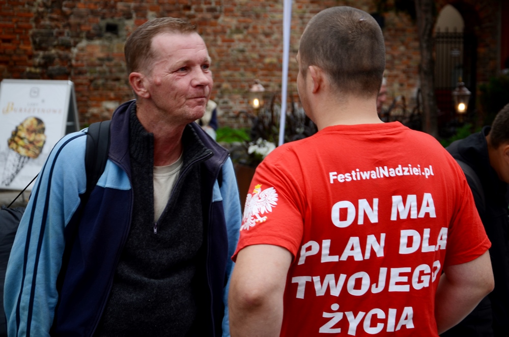 Przemawiam bez nagłośnienia i czuję się jak szesnastowieczny przebudzeniowiec. Ludzi jest coraz więcej, a w miarę mówienia przyłączają kolejni, w tym sporo zaciekawionych przechodniów. Nauczam, że Bóg daje nam zawsze kolejną szansę i nigdy z nas nie rezygnuje. Widzę jak nasi „twardzi” bywalcy ocierają łzy, a po chwili powierzają swoje życie Bogu. Zaczynają wierzyć, że wszystko jest możliwe. Żaden inny temat nie jest tak bardzo wart głoszenia, jak ten.