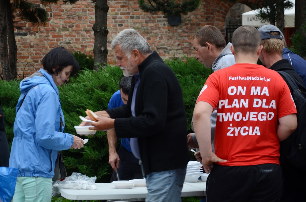 Proszę dziś jedną ze znajomych, która do tej pory nie pomagała, a jedynie się przypatrywała, by pomogła rozdawać łyżki. Później przychodzi do mnie i dziękuje mówiąc, że to była odpowiedź na jej modlitwy. Przedziwne jest życie chrześcijan.