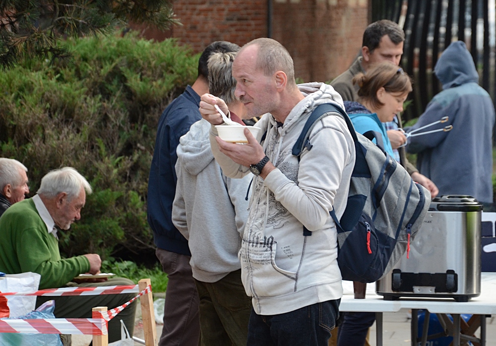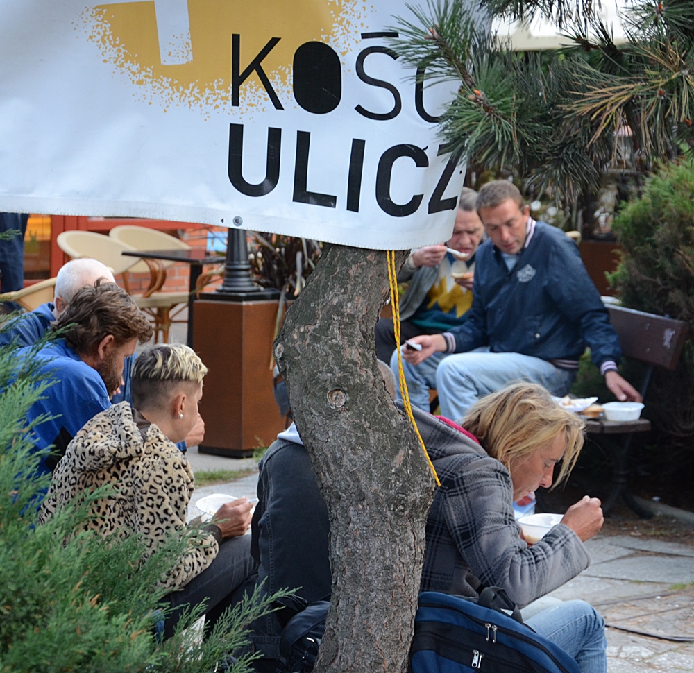 Paweł przychodził na każde spotkanie Kościoła Ulicznego i zawsze prosił o rozmowę. Pomimo, że był pod wpływem alkoholu wzbudzał nasze współczucie. Poświęcaliśmy mu wiele czasu. Pewnego dnia, zrozpaczony po dramatycznym wypadku swojego synka, zapowiedział, że popełni samobójstwo i nagle zniknął. Często myśleliśmy o nim, Dzisiaj, po pół roku, Wioleta przyprowadza go do nas. Wie, że się ucieszymy. Nie poznałem go. Tak dobrze wyglądał. Paweł przestał pić. Wioleta ze swoim chłopakiem, sami po życiowej zapaści, przyjęli go do siebie. Cała trójka była bezdomna, a teraz mają pracę i trzypokojowe mieszkanie.