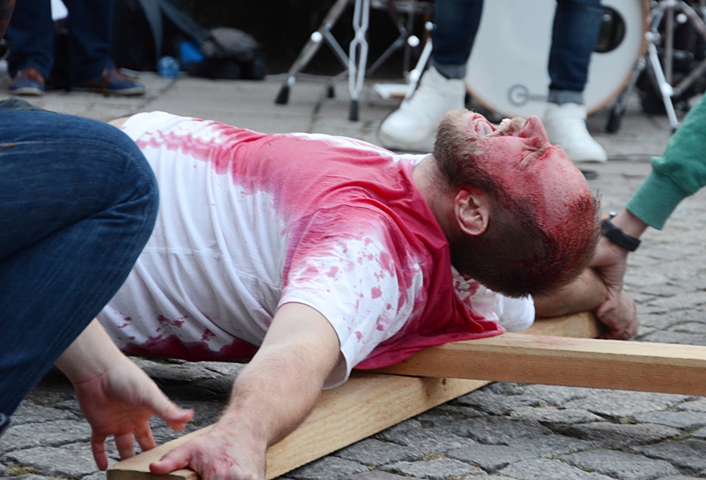 Dzisiaj jest bardzo dużo ludzi, zarówno wolontariuszy jak i uczestników, ok. 300 osób. Gra zespół Przed Nami. Przemawia Jack z Kongo. Występuje grupa teatralna Tożsami. Mamy kiełbaski i zupę. Jest też stoisko z książkami.