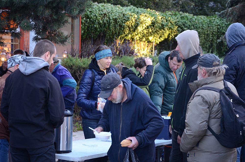 Pod sam koniec spotkania przychodzi mężczyzna, który był kiedyś bezdomny. Przeprasza, że dawno go nie było na spotkaniu KU. Otrzymał pracę i każdego dnia pracuje do późna. Cieszymy się. Częstujemy go zupą. Nie odmawia. Jest jak w rodzinie.