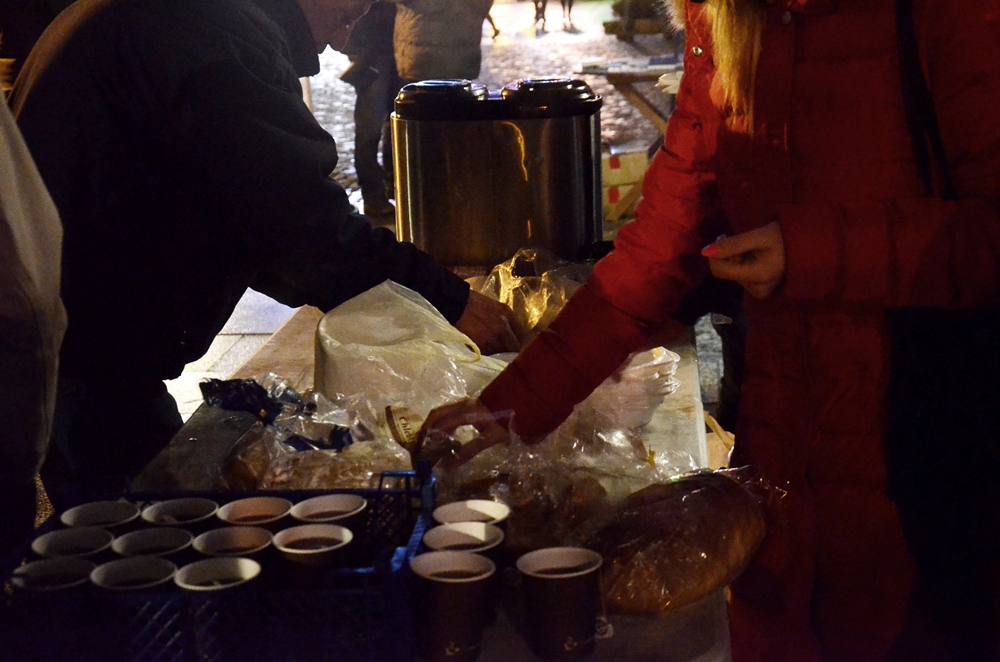 Agnieszka z koleżanką przynoszą zupę z firmowej stołówki. Zadają sobie wielu trudu, aby to zrobić. Odbywa się to wszystko z treści zapisanej w sercu. Ludzie potrzebujący są im bardzo wdzięczni.