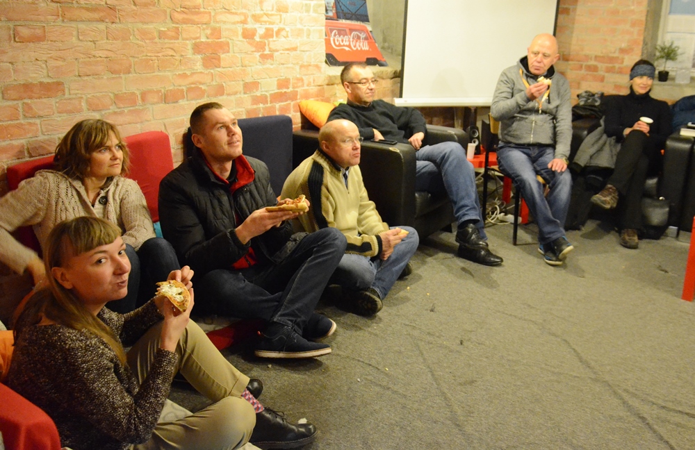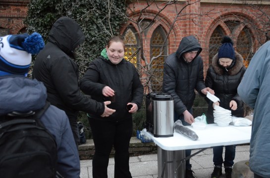 Zwijamy sprzęt i idziemy na spotkanie dla wolontariuszy. Robimy gorącą herbatę. Przywożą nam pizzę. Rozgrzewamy się. Czytamy Biblię, dzielimy się myślami. Modlimy się. Wszyscy jednomyślnie stwierdzają, że doświadczamy wspólnoty marzeń. Wszyscy chcą więcej, pomimo że siedzijesteśmy razem już od trzech godzin, Zebrani mają po 20, 30, 40, 50, 60, 70 lat. Bóg nas jednoczy w swoim Duchu. To najsilniejsze więzy jakie istnieją. One likwidują wszelkie podziały.