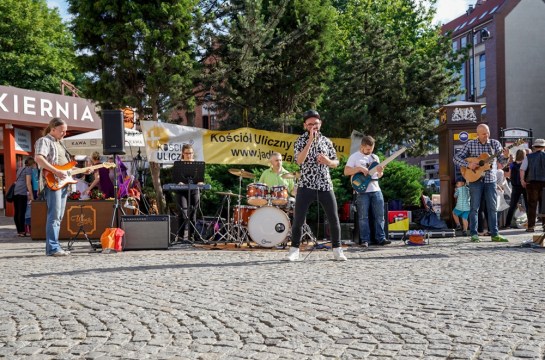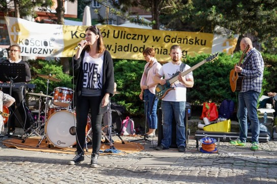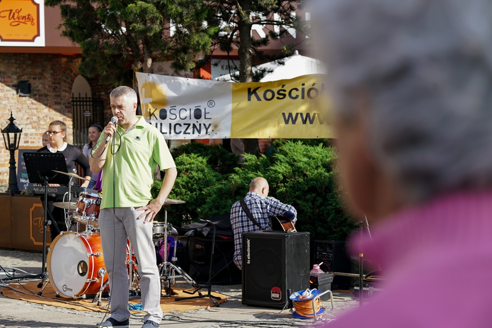 Dzisiaj gra zespół Przed Nami z Kościoła Droga Pana. Muzycy wyzwalają dużo energii. Dziewczyny flagują. Utwory są przeplatane świadectwa przemiany życia. Setki osób przechodzą obok. Zatrzymują się i słuchają. Mamy bardzo wiele rozmów i modlitw. Spotkanie obsługują wolontariusze z Kościoła Zielonoświątkowego, Kościoła Baptystów, Kościoła Armia Dawida i Wspólnoty Miasto.