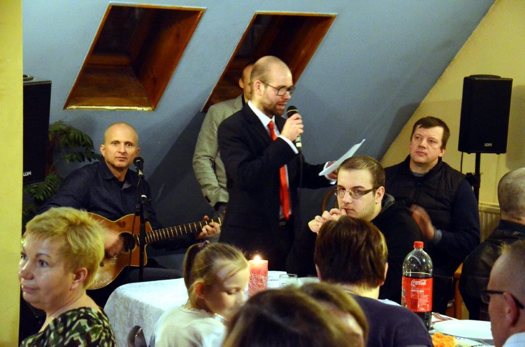 W ostatni piątek Kościół Syloe z Malborka zorganizował w jednej z restauracji uroczystą kolację. Okazji do świętowania było kilka. Po pierwsze, równo rok temu powstał w Malborku Kościół Uliczny. Po drugie, zbliża się Boże Narodzenie i odbywała się wigilia. Gościem specjalnym na kolacji był Piotr Stępniak z Bożej Bandy Byłych Bandytów. Piotr przyjechał nie tylko z Bandą, ale i z żoną. Trzecią okazją do świętowania była 11 rocznica ich ślubu.