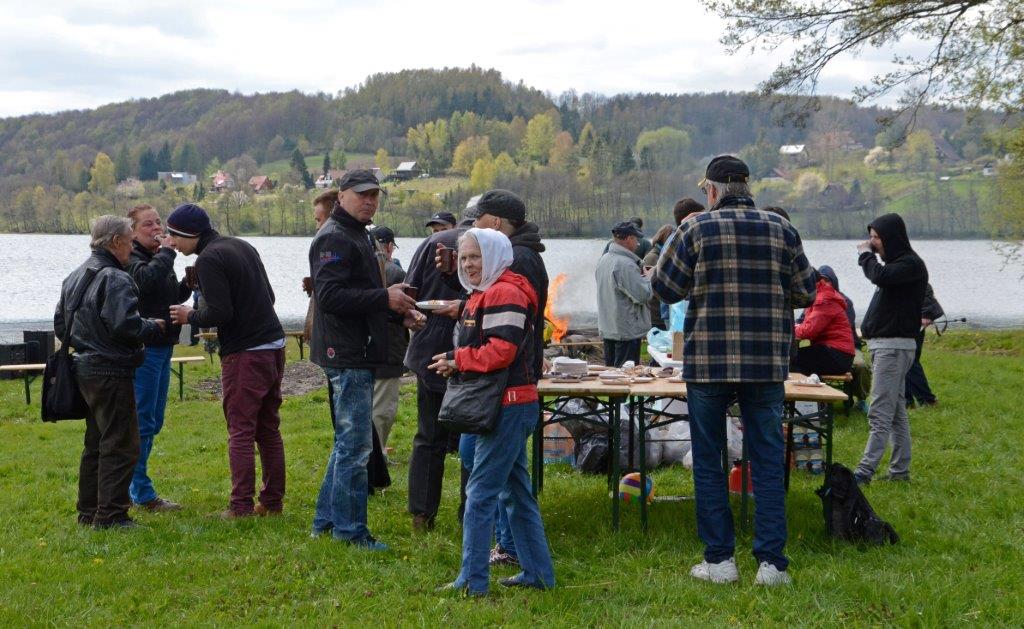 Jeżdżę po okolicy i szukam właściwego miejsca. Jezior jest wiele, ale dostęp do nich nieciekawy. W Sianowie koło Kartuz znajduję ładną łąkę, na której znajduje się gotowe miejsce na ognisko, boisko do gry w nogę i do kosza. Miejsce idealne. Idę do sołtysa i mówię, że chcemy przyjechać z ekipą z Gdańska. Jest zadowolony i mówi, że przygotuje patyki na kiełbaski. Prowadzi mnie do pana Władka. Ten załatwi drewno na ognisko. Kolejna ważna sprawa załatwiona.