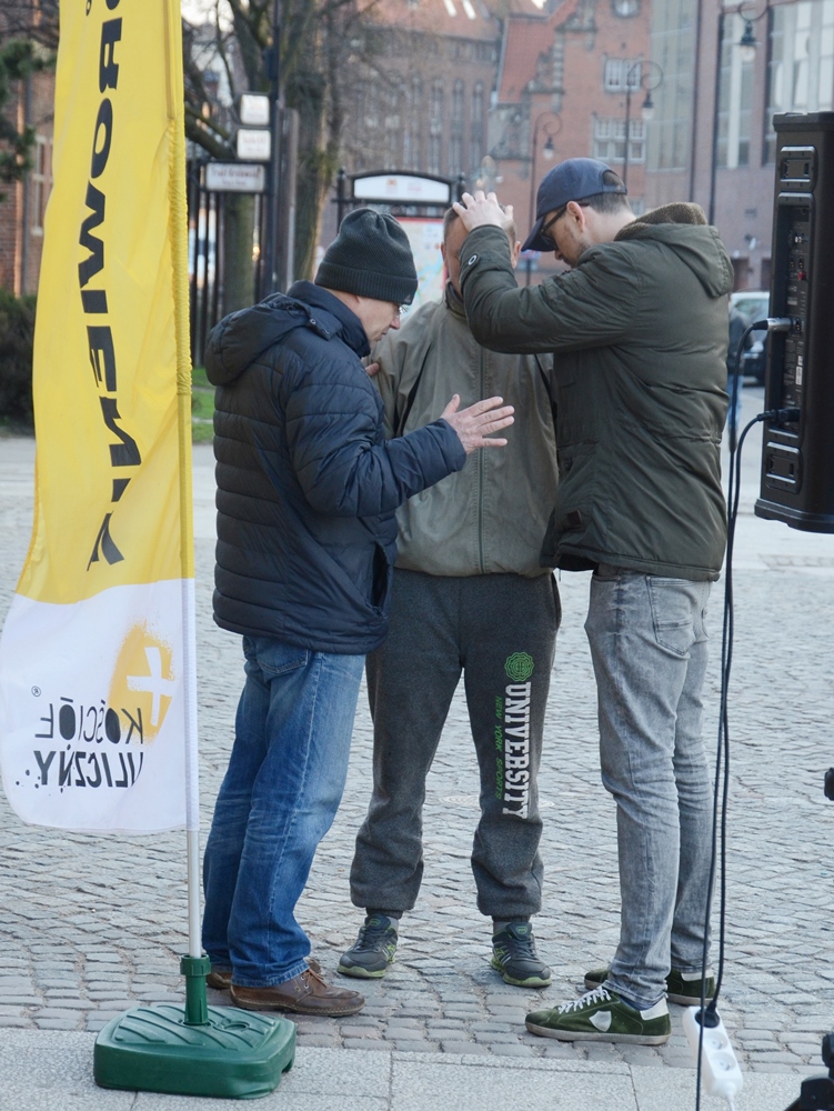 Dzisiaj mamy gości z Londynu. Gareth, Gareth i młodziutki Jonathan. Cała trójka też głosi ewangelię na ulicach stolicy Anglii. Tym razem przemawiają do Gdańszczan i turystów. Gareth 1 mówi o mierze, którą mierzymy swoje życie, osiągnięcia i sprawiedliwość. Nie zawsze jest to przyrząd dobrze skalibrowany. Stąd odczyty nie zawsze są prawdziwe. Czasami źle myślimy o samych sobie, o innych ludziach i o zbawieniu. Jezus Chrystus posiada miarę, z której wynik jest zawsze właściwy. Gdy oddajemy Jemu swoje życie, nasza ocena nabiera obiektywności.