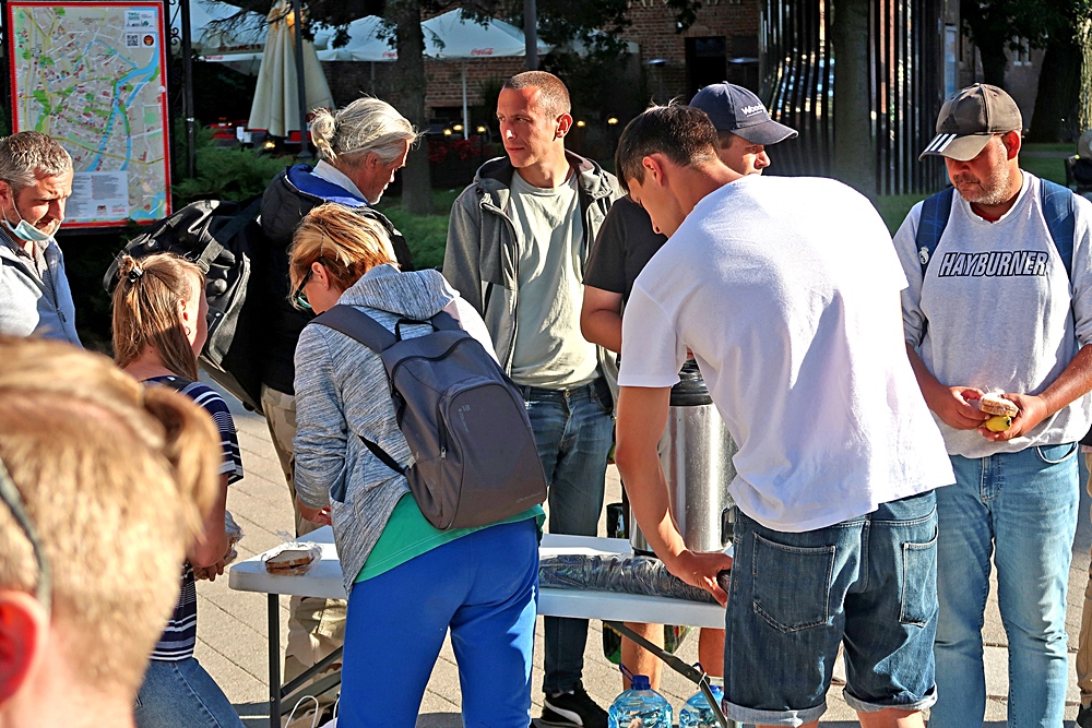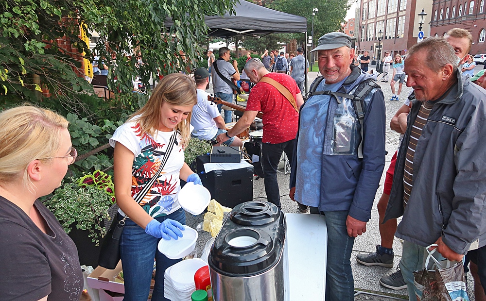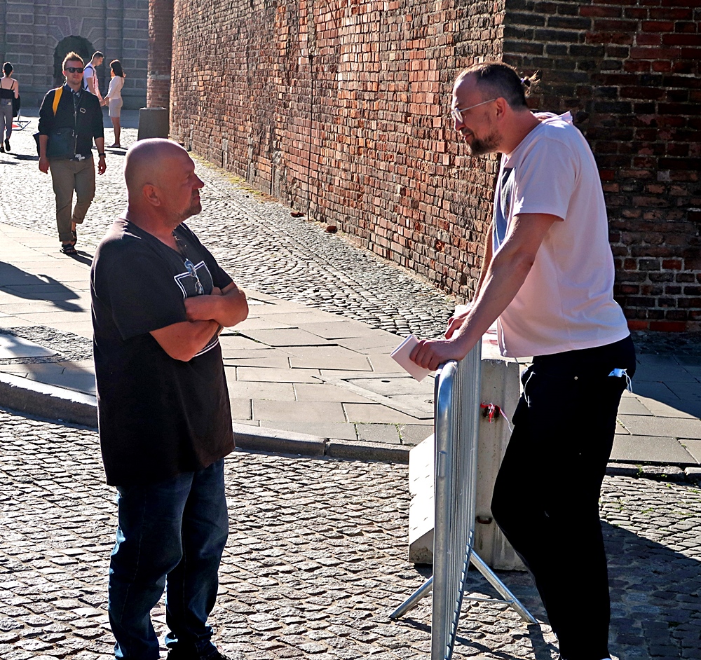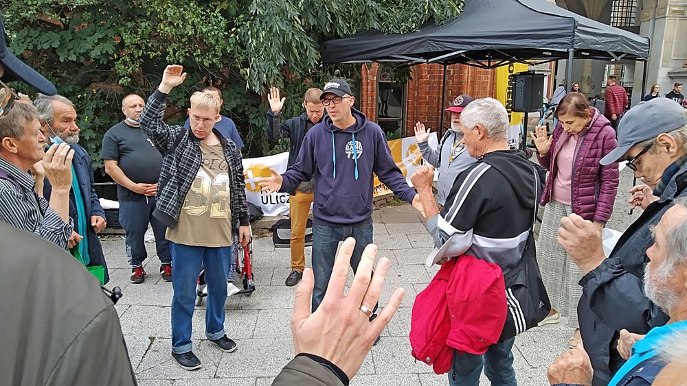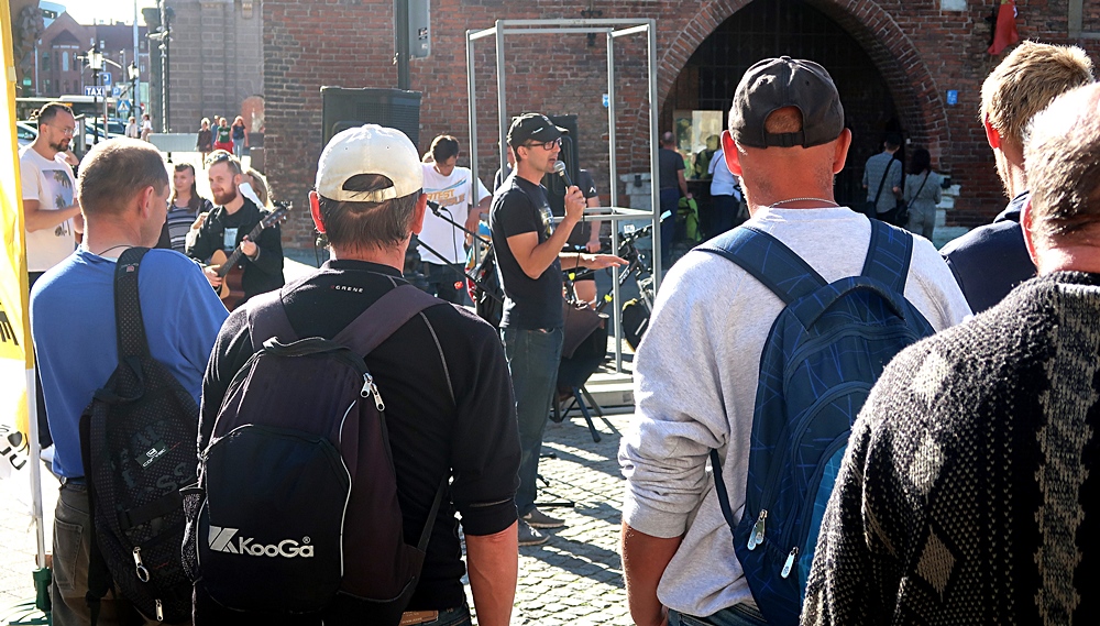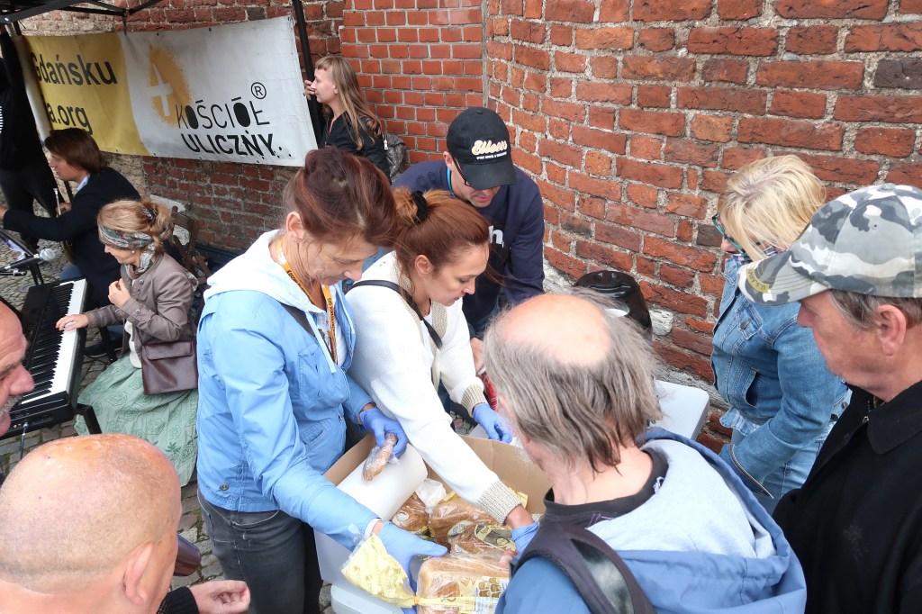 „«Mężowie ateńscy – przemówił Paweł stanąwszy w środku Areopagu widzę, że jesteście pod każdym względem bardzo religijni. Przechodząc bowiem i oglądając wasze świętości jedną po drugiej, znalazłem też ołtarz z napisem: „Nieznanemu Bogu”. Ja wam głoszę to, co czcicie, nie znając. Bóg, który stworzył świat i wszystko na nim, On, który jest Panem nieba i ziemi, nie mieszka w świątyniach zbudowanych ręką ludzką i nie odbiera posługi z rąk ludzkich, jak gdyby czegoś potrzebował, bo sam daje wszystkim życie i oddech, i wszystko.” Tak samo działo się podczas ostatniego spotkania Kościoła Ulicznego w Gdańsku. Piotr stanął na murku i zaczął swą przemowę. Było jakoś głucho i pusto. W takich warunkach głos niósł się daleko a zebrani wokół ludzie przysłuchiwali się z większą uwagą. Choć nie mieliśmy namiotu, ani nagłośnienia, nasza obecność spowodowała trwałe zmiany w sercach wielu osób. Usłyszeliśmy decyzję pójścia za Bogiem, którego głosimy. Jeden z obecnych zadawał pytania dotyczące chrztu jako osoby dorosłej. Inni wychwalali Jezusa za otrzymany pokarm. Spotkanie pełne było Bożej chwały. I choć w kilku momentach diabeł próbował zabrać nam pokój, to jednak wzmocnieni przez wiarę odnieśliśmy zwycięstwo zachowując miłość, radość, pokój, cierpliwość, uprzejmość, dobroć. Duch Święty działał i to było spełnienie naszych modlitw.